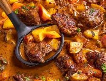 A savory beef stew rich with onion, carrot, celery, potato and chunks of tender beef. Served in a house made bread bowl. Gluten free option of beef stew over rice available.